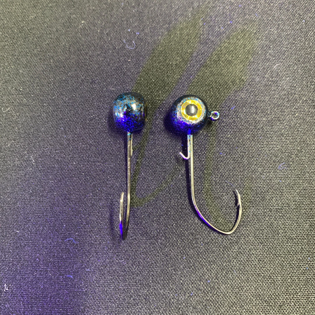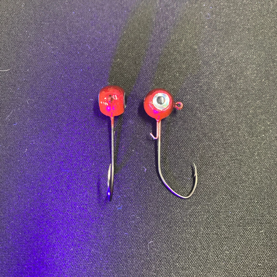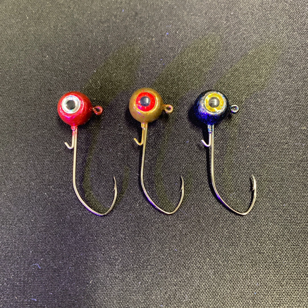 Round head 1/0 or 2/0 Mustad hooks.
