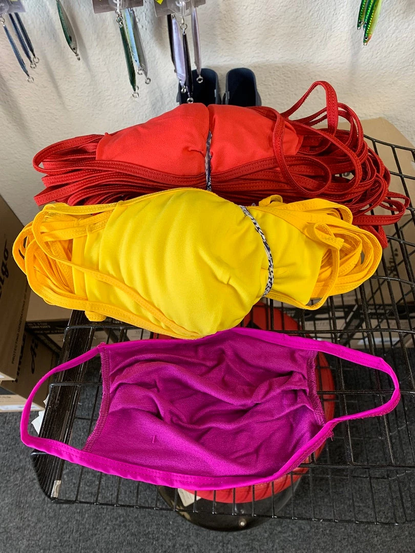 80% Poly 20% Spandex. These lowcost masks are great for mitigating face touching.