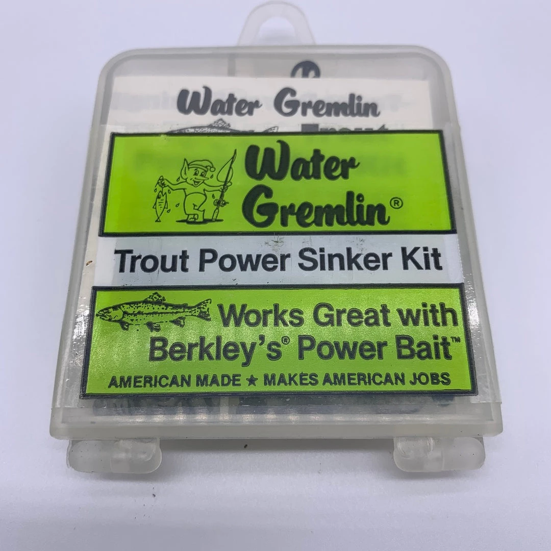 This Water Gremlin Trout Power Sinker Kit contains 56 sinkers in several smaller sizes and weights in a reusable selector box.