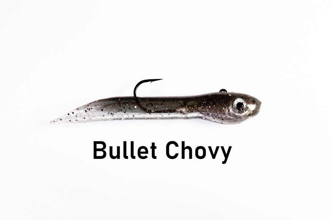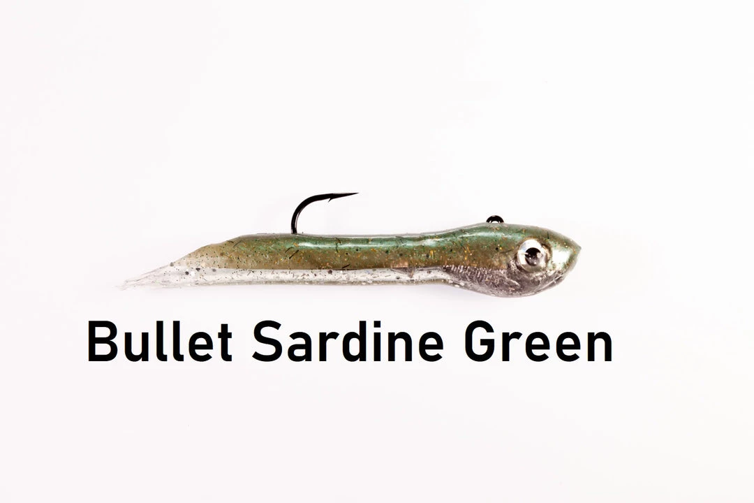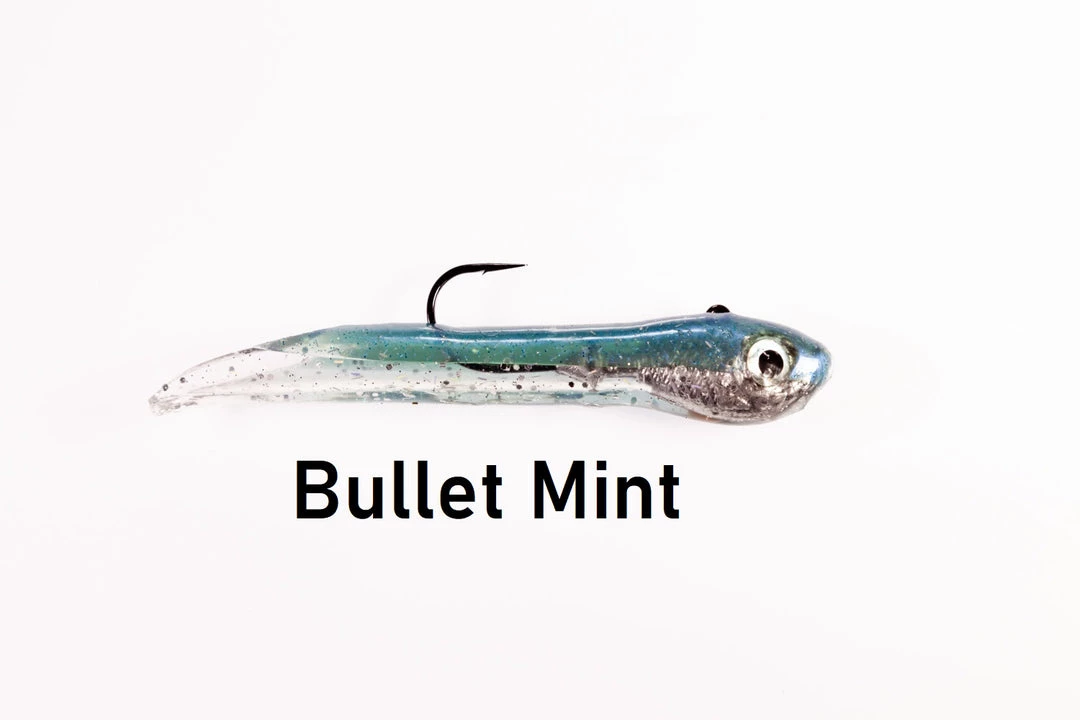 Last spring while fishing for Yellowtail we had a bite where anything larger than our 4” baits would not get touched. This also happens often with Tuna when they are keyed in on small baits. So for this situation a heavier bait for further cast, faster sink, and a stronger hook to handle big Tuna and Yellowtail needed to be designed. This bait also needed to swim straight with a fast retrieve and a small profile. With all of this in mind, we took these ideas back to the shop and designed what we now call the HUB Bullet!