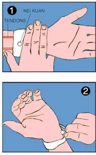 Drug free relief from motion sickness. For use on Boats, Planes, Cars or Morning Sickness. Cotton elastic wristbands with built in acupressure plastic bead to relieve nausea.