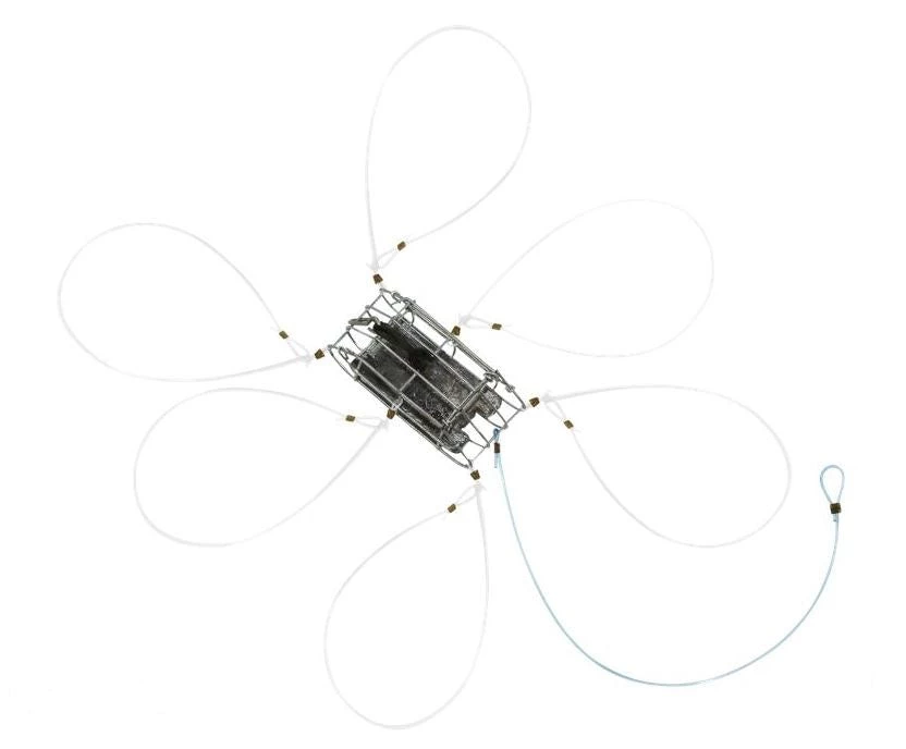 Simply place some fish scraps in the metal bait cage, cast to the rocks, and wait for the telltale tug.